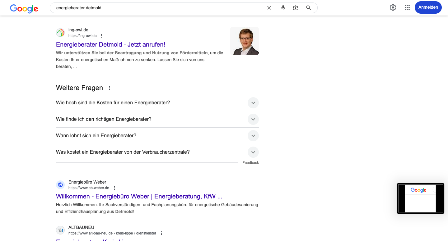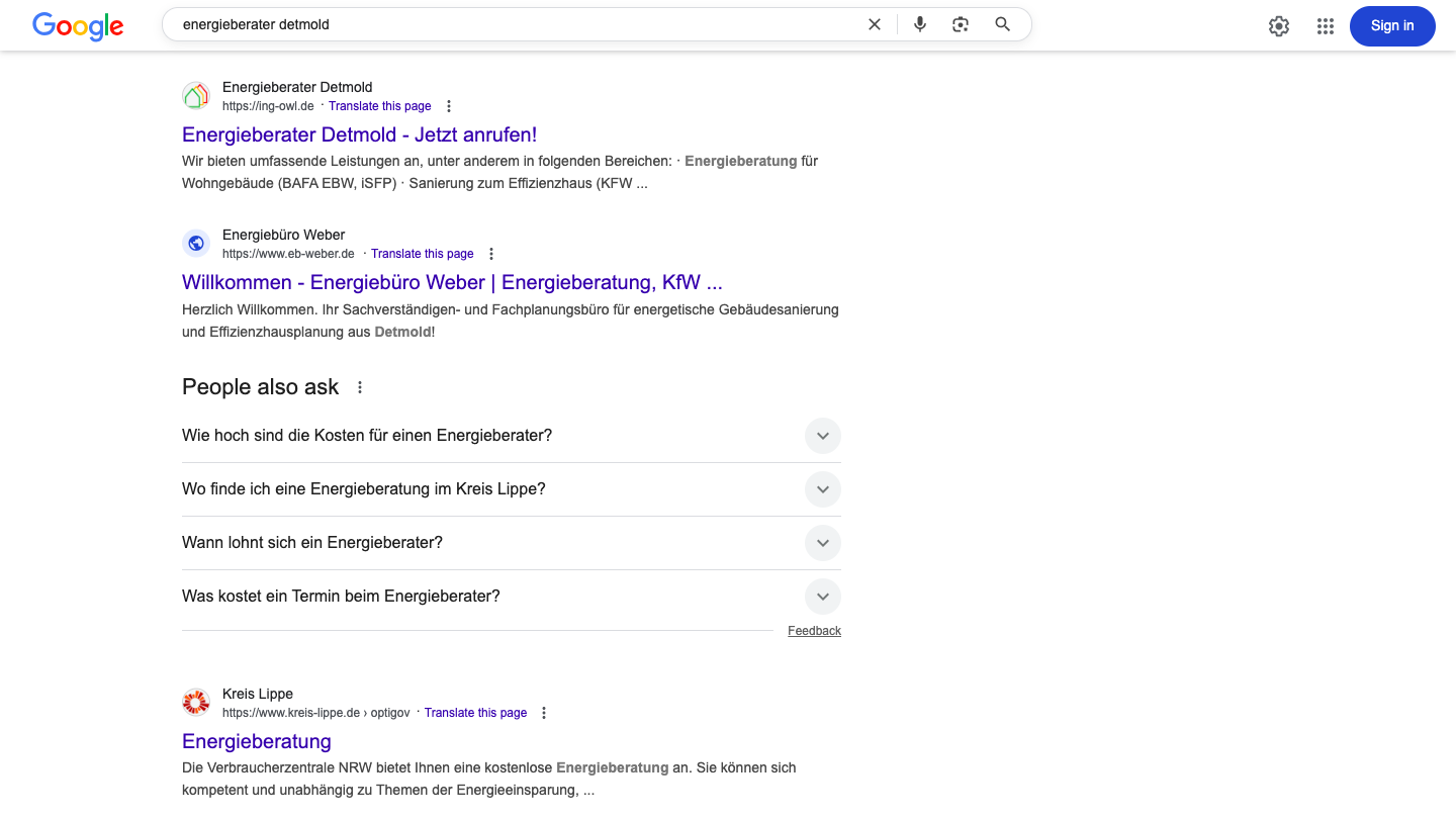 Ingenieurbüro Hegerfeld erhielt eine Website, die exakt nach den Vorstellungen erstellt wurde, und profitiert durch gezielte SEO-Maßnahmen nun von einer Nr.1-Platzierung bei Google für „Energieberater Detmold“. Dies hat die Sichtbarkeit des Unternehmens deutlich gesteigert und zu mehr Kundenanfragen geführt. Zusätzlich wurde das Ingenieurbüro bei der Lösung von Problemen mit der Verifizierung des Google My Business-Profils unterstützt, wodurch eine optimale Darstellung im lokalen Suchbereich sichergestellt werden konnte. Die neue Online-Präsenz hat das Geschäft nachhaltig gestärkt und den Weg für langfristigen Erfolg geebnet.